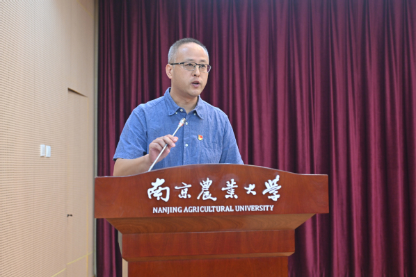 会上,农学院党委书记庄森,体育部党总支书记陆东东,公共管理学院土地管理系教师党支部书记刘向南,资环学院辅导员郑冬冬分别作交流发言。