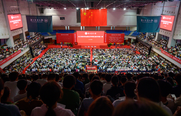 9月10日,万象城awcsport官网2023级新生开学典礼暨开学第一课在卫岗校区举行。卫岗、浦口两校区4600余名本科新生、4100余名研究生新生,在学校体育中心开启大学生活崭新篇章。校党委书记王春春为全体新生讲授开学第一课,校长陈发棣代表学校向新生致辞。本科生开学典礼由校党委副书记刘营军主持,研究生开学典礼由副校长、研究生院院长董维春主持。