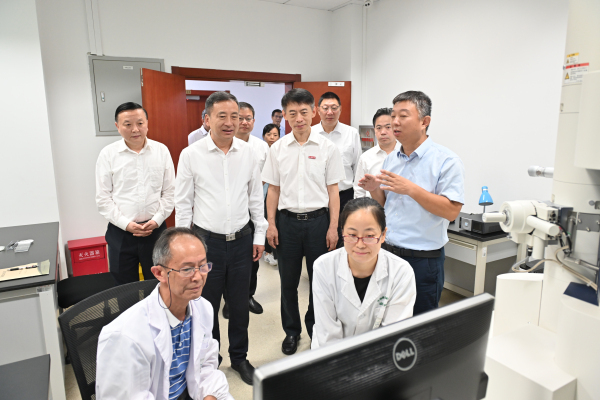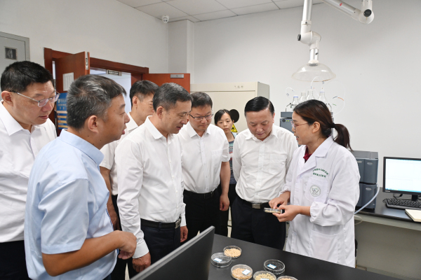 在作物遗传与种质创新利用全国重点实验室,调研团听取了实验室标志性研究成果汇报,实地考察了作物种质资源库和智能生长室,询问了农业科技成果转化情况,充分肯定了实验室取得的成绩,鼓励学校在推进种业自主创新、保障国家粮食安全等方面贡献南农力量,以高水平科技成果支撑农业高质量发展。