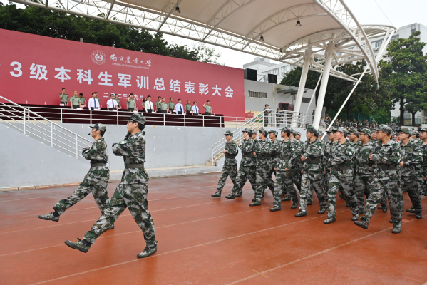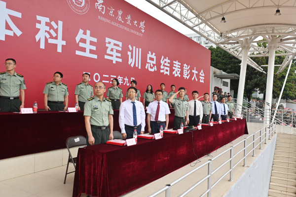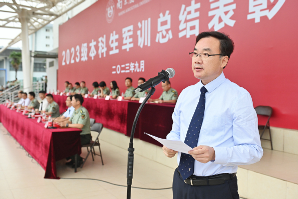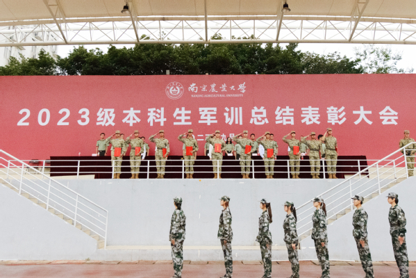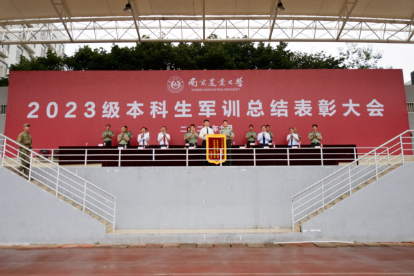 9月22日,2023级本科生军训总结表彰大会在卫岗和浦口校区分别举行。中国人民解放军陆军工程大学野战工程学院副院长庄晓龙大校、野战工程学院学员八大队大队长邹毓武上校、副大队长王斌中校应邀出席大会。万象城awcsport官网党委书记王春春,校党委常委、副校长闫祥林,党委常委吴群以及党办、学工部门、浦口管委会、人武部负责人,各学院负责同志分别在两校区参加会议。