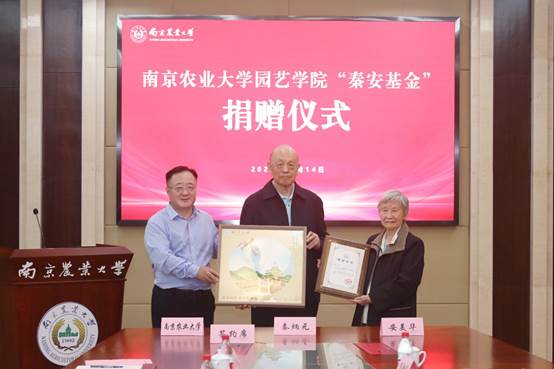 园艺学院党委书记韩健表示,两位校友几十年如一日勤勉工作、崇尚简朴,在各自的工作岗位做出了重要贡献,生动践行了“诚朴勤仁”的校训精神。他们一直心系母校、感恩母校培养和老师教诲,此次无私捐赠,在母校设立“秦安基金”,为师生、校友树立了榜样,传递了“爱校荣校”的正能量。学院一定以两位校友为榜样,在学校的正确领导下、在广大校友的支持帮助下,努力培养卓越园艺人才、创新园艺科技成果、服务城乡居民高品质生活,实现园艺让生活更美好的奋斗目标。