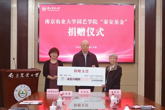 今年是学校开启第三个甲子办学的起始之年,在学校第121个校庆纪念日即将到来之际,秦炳元、安美华两位校友决定捐赠200万元,感恩回馈母校,在学校设立“秦安基金”,用于支持园艺学院建设与发展,这充分体现了两位校友无私奉献、助人为乐的高尚品格。