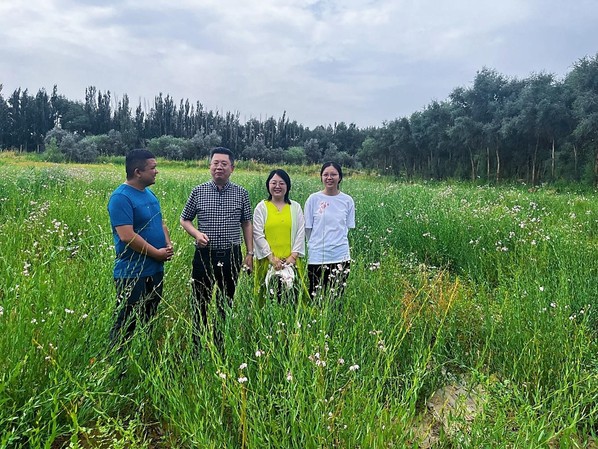 麻浩教授在新疆尉犁县罗布麻试验基地(左二)