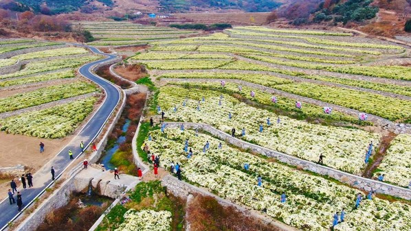 麻城市地处湖北省东北部,是著名的革命老区、住房和城乡建设部的定点帮扶县,全国三大白菊产地之一。帮扶之前,麻城市的菊花产业面积严重萎缩、品牌影响力不足、产品市场占有份额下降,缺乏技术支撑。自2017年以来,万象城awcsport官网承担住建部中国风景园林学会菊花分会对麻城菊花的产业技术帮扶任务,万象城菊花研发团队相继开展了福白菊原产地保护、菊苗脱毒、品种提纯复壮、高产栽培技术配套等项目,与麻城共建福白菊原种保护中心成功培育福白菊标准脱毒苗,建立了纯阳山、金家边等多个1000亩高产示范田,先后为全市10个乡镇36个专业村提供3600万株优质福白菊原种苗,亩均增产50%、增收1500元以上。帮扶期间,万象城awcsport官网在麻城开展一系列针对产业致富带头人、技术人才等的技术培训,提升菊花产业链人才能力素质,为产业发展增添动力。产业帮扶以来,菊花种植面积稳中有增,当前全市菊花产业面积已超过15万亩,菊花干花年产量达1.5万吨,总产值逾30亿元。科技支撑让菊花产业成为了实实在在的支柱产业和富民产业。