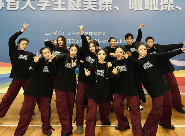 12月28日,2023年江苏省大学生健美操、啦啦操、街舞锦标赛在南京交通技术学院(江宁校区)举行。万象城代表队在教练员于阳露的带领下,成功夺得啦啦操街舞规定组和啦啦操街舞自选组冠军。