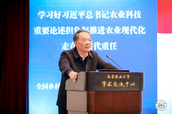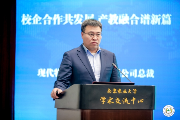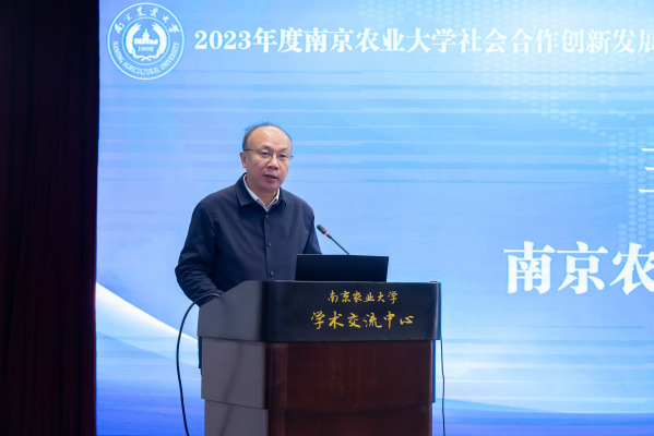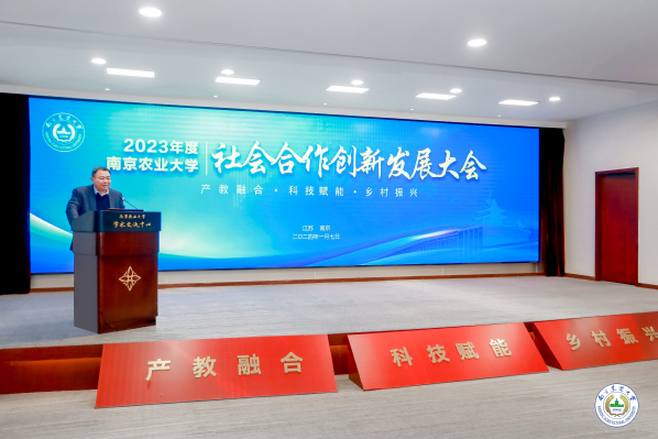 校党委书记王春春在致辞中表示,社会合作是高校统筹推进“教育科技人才”三位一体发展和办学影响的综合体现,是“校—地—企”深化科教融合、产教融汇的重要手段。立足新发展阶段,南农将和合作伙伴携手并进,一是立足人才振兴,以坚定责任感培养新农人头雁队伍。建立完善协同育人机制,构建全覆盖、多层次、个性化的创新创业教育体系,促进教育链、产业链、创新链有机衔接,扎实培养学得好、用得上、留得住的高素质应用型人才。二是坚持自立自强,以坚实的毅力勇攀科技创新高峰。充分对接国家战略需求、区域发展需求和产业需求,加快支撑核心技术攻关,加快推动科技成果从实验室走向生产线,推动校企共建高水平科研平台,实把科技竞争力转化为强农富民的实际生产力。三是坚持强农兴农,构建多元主体协同推广机制。大力发展县域产业联盟,充分发挥新农村服务基地作用,把综合示范研究院做强,把特色产业研究院做精,不断发展壮大地方优质特色产业,持续推出一批在全国叫得响、在地方推得开、在老百姓心中有影响的社会合作新方案。
