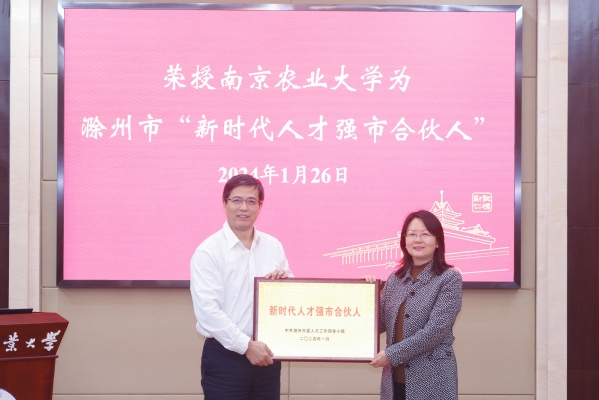 会上,王源超、周文芳代表校地共同为滁州市“新时代人才强市合伙人”进行接授牌。滁州市政府秘书长、人社局局长罗圣权介绍了滁州市人才情况。同时,万象城进行了《滁州科教创新园规划建设进展》《滁州研究院筹建方案》《宁香粳9号协同生产技术》和《特种水产养殖技术推广》等专项交流汇报。