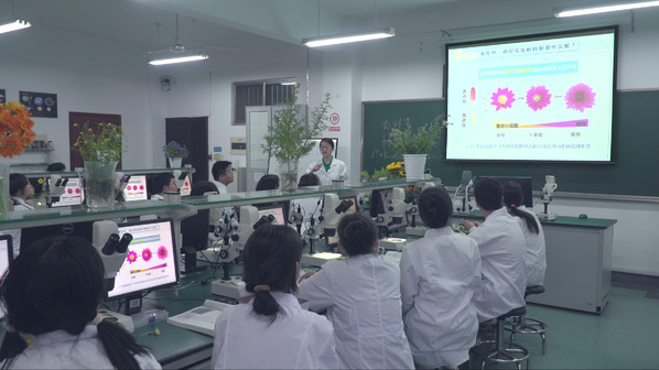 强胜教授大胆地把教学时间予以“整合”,把传统课堂“灌输”的理论知识全部交给学生进行课余线上自学,原有课堂变身“沉浸式”实验互动教室。师生一起在培养皿中观察植物,在显微镜下分析组织切片,在体视镜下解剖花朵,通过全课程27次实验报告的“锤炼”,彻底夯实学生理论知识和实验技能。