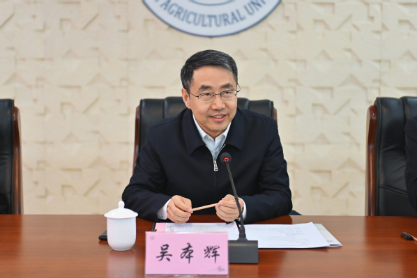 王春春对吴本辉一行的到来表示欢迎。他指出,南京农大和江苏农垦有着长期良好的合作基础。近年来,江苏农垦以走在前、做示范的担当作为,为江苏“三农”事业和国家粮食安全作出了重要贡献。王春春表示,双方要围绕一流发展目标,重点抓好种业和农业智能装备的合作领域,持续推动“从0到1”的基础研究,以及“从1到10”的产业应用,加速形成农业新质生产力。王春春希望双方以科技创新为引领,打造服务国家战略的新标杆;以协同育人为切入,探索新农科人才培养新路径;以产教融合为抓手,打造乡村振兴江苏新样板,为推动双方高质量发展,助力中国式现代化江苏新实践,服务农业强国作出更大贡献。