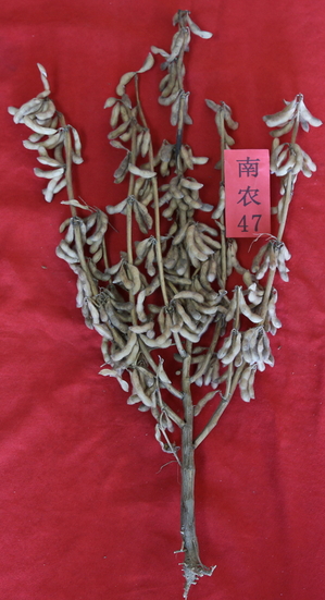 “南农47”大豆品种:适应性好,抗灾能力强,平均生育期107-109天,区域试验平均亩产492斤,籽粒中等偏大,大小均匀,百粒重19-20克,籽粒圆润饱满,商品性好。一般蛋白质含量42-45%,粗脂肪含量18.69%,属于高蛋白大豆品质好,特别适合加工豆腐。