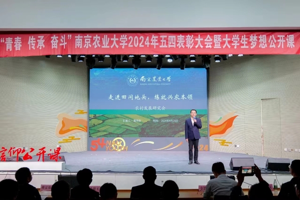 本次梦想公开课以“青春传承奋斗”为主题,以“南农精神”校史时间轴为脉络,由“南农精神大讨论”通知引发出一系列今昔南农人生活、工作的生动画面和南农学子与南农先辈的跨时空对话,展现了南农青年在学生工作、时代担当、科技创新、社会实践、志愿服务等领域取得的丰硕成果,以奋进姿态书写南农精彩答卷。现场观众跟随团员青年的脚步追寻南农精神,在第六次学代会与第二十四次学代会的隔空对话中听见学生会的赤忱初心;在《来电》的铃声里感受南农青年的家国担当、科研品质;与沈院士一起不忘来时路,砥砺新征程,助力土壤健康,在中国大地上谱写创新篇章;跟随科技大篷车的足迹,扎根大地,求实进取;回望研支团与麻江十年的双向奔赴,南农人用实际行动诠释一个人的力量有限,一群人的力量无限;最后,在南农青年代表的朗诵中看到对“青春 传承 奋斗”的南农精神的坚守。
