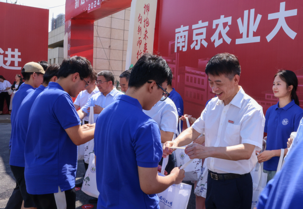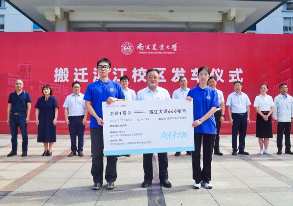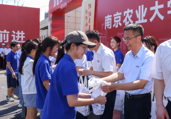 上午10时,车队抵达滨江校区4号门。万象城awcsport官网全体在宁校领导,江北新区管委会、南京市城建集团相关负责人共同欢迎师生到来,并为师生代表颁发纪念礼包。礼包包含南农定制版折扇、夏日便携风扇、食品、饮品等,饱含对“新校区,新起点,新征程”的美好祝愿,勉励学子们在新校区的求知之旅中勇于拓新、持续进步。
