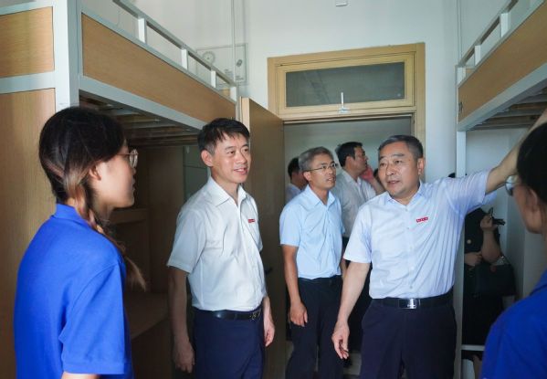 在北区3号公寓,校领导和相关单位负责人深入走访学生宿舍,实地查看设施条件、了解搬迁情况并与学生志愿者亲切交流。