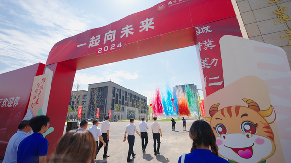伴随着一束束腾空而起的绚烂礼花,现场师生共同迈入滨江校区校门,开启南农充满活力的拥江发展新时代。