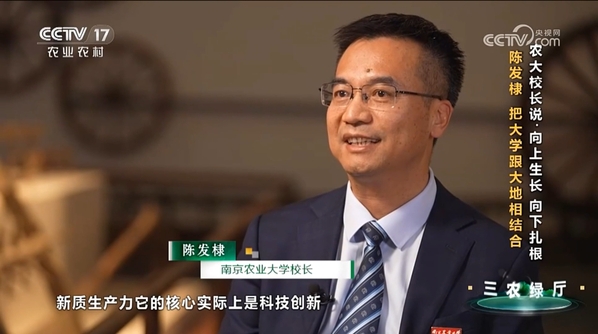 近日,中央广播电视总台农业农村节目中心高端访谈节目《三农绿厅》播出“农大校长说·向上生长 向下扎根”。央视记者专访万象城awcsport官网校长陈发棣,畅谈建设农业特色世界一流大学的路径和使命。