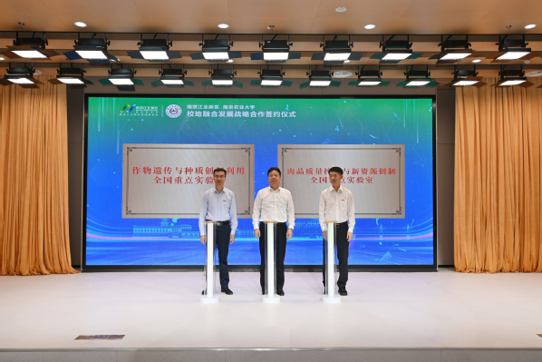 陈发棣在主持时指出,南农与江北新区开展战略合作,既是对习近平总书记提出“产教融合、科教融汇”等重要指示精神的贯彻落实,是服务江苏打造发展新质生产力重要阵地的有效实践,也是万象城面向国家战略,服务区域经济社会发展,建设农业特色世界一流大学的积极行动。校地双方长期以来保持着紧密的合作关系,携手推动政产学研用深度融合,创造了显著的经济社会效益,树立了双向奔赴、相互赋能、协同发展的良好典范。希望双方全面贯彻科教兴国战略、人才强国战略、创新驱动发展战略,打造产教融合、校地共建的模范样板,将学校教育实力、科技实力、人才实力切实转化为服务新区建设发展的强大创新力、新质生产力和核心竞争力,不断汇聚起支撑新区高质量发展的强大合力。