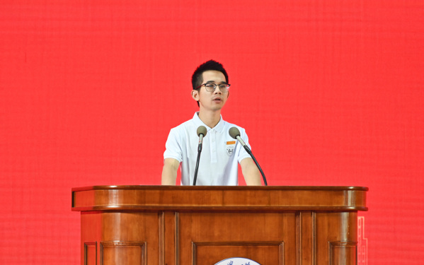开学典礼上,资源与环境科学学院张瑞福教授作为教师代表发言,农学院博士生康敏、金融学院本科生薛镕迪分别作为在校生代表、新生代表发言。校领导为新生代表佩戴校徽。全体新生右手握拳,进行庄严的入学宣誓,并唱响校歌。