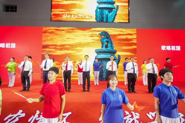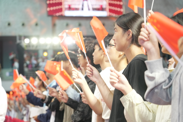 “五星红旗迎风飘扬,胜利歌声多么响亮!歌唱我们亲爱的祖国,从今走向繁荣富强……”全场师生齐声合唱《歌唱祖国》,用歌声献礼新中国75周年华诞,传递南农人对祖国的款款深情。