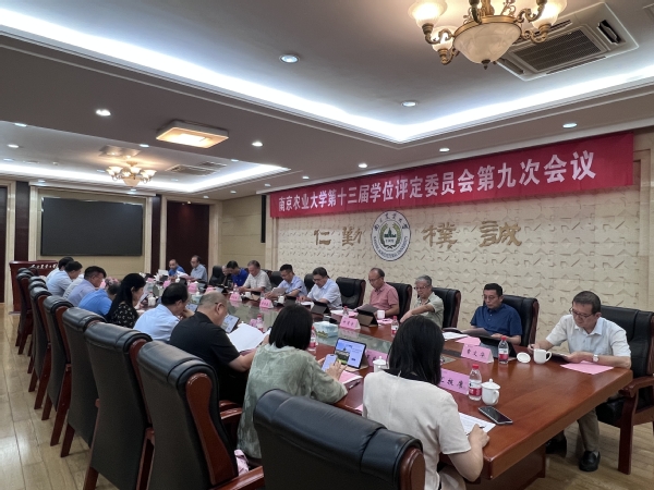 9月29日下午,学校第十三届学位评定委员会第九次会议在金陵研究院召开,校长陈发棣,中国工程院院士沈其荣,副校长丁艳锋、董维春、王源超等22位委员出席会议。