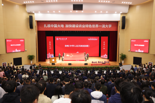 “心之所思,国之粮仓;情之所系,父母之邦……诚朴勤仁,南农品质;中国情怀,世界眼光。”现场,学校师生代表齐聚舞台献词,共同抒发新时代南农青年在推进强国建设、民族复兴伟业中展现青春作为、彰显青春风采、贡献青春力量的铿锵情怀,书写为中国式现代化挺膺担当的青春篇章。
