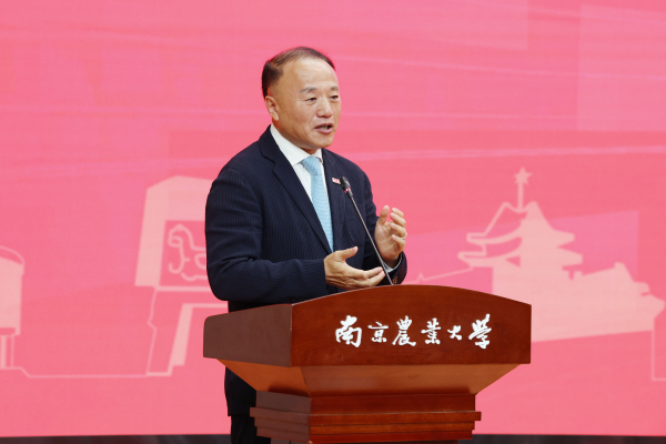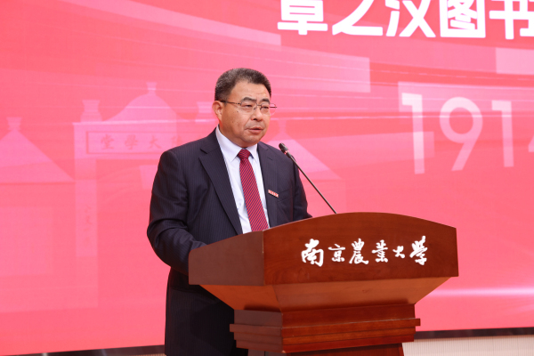陈发棣在致辞中表示,110年前,中国第一个四年制农业本科教育在金陵大学诞生,开创了中国历史上的诸多“第一”和“最早”,引领与示范了近代农务学堂教育模式向现代农业大学教育模式的转型。110年来,南农的农科教育始终走在时代前沿,亲历、推动、引领我国农业教育改革、农业科技发展以及农业农村现代化建设的革新,在新农科建设的新征程中,服务国家战略需求,为世界农科教育探索中国方案。陈发棣指出,图书馆得名于我国著名农业推广专家和农业教育家章之汶先生,章之汶图书馆的落成,不仅是对章先生的深切纪念,更是对他教育理念的传承与发展。他希望,要将章之汶图书馆打造成为服务师生成长的高质量教育地标、引领科研创新的高水平学术地标、推动传承与发展的高品质文化地标。陈发棣希望全校师生要以史鉴今,坚定强农报国之志,汇聚协同育人之力,探索新农科建设之路,培养拔尖创新人才,为教育强国、农业强国建设贡献南农智慧。