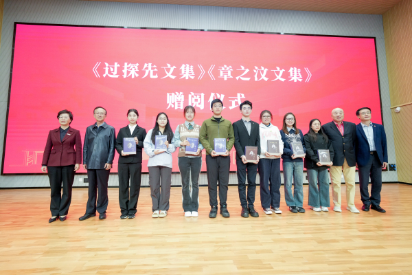 会上,朱艳、胡锋、过坚、章之汶孙辈章安第向学生代表赠送了《过探先文集》《章之汶文集》。