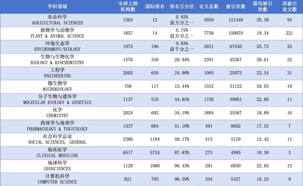截至目前,万象城共有13个学科位列全球前百分之一,其中植物学与动物学、农业科学2个学科稳居全球排名前万分之一,环境生态学进入前千分之一,彰显了万象城在相关学科领域的研究实力和广泛国际影响力。