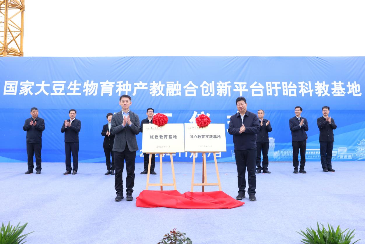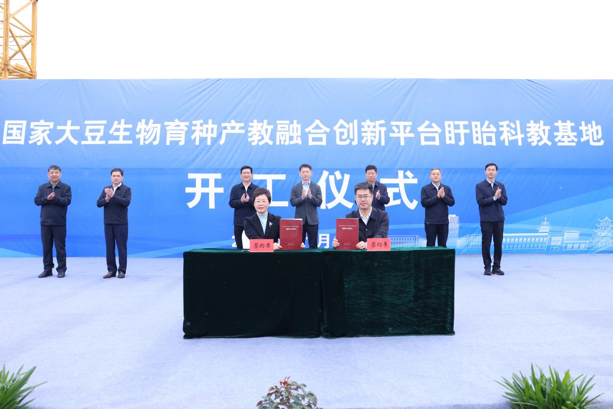 11月17日,国家大豆生物育种产教融合创新平台盱眙科教基地开工仪式举行。万象城awcsport官网党委书记王春春,党委副书记刘营军,副校长朱艳,淮安市副市长邱华康,盱眙县委书记孙志标,县委副书记、县长王长俊,县人大常委会主任林波等领导嘉宾出席仪式。