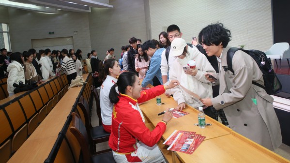 提问环节中,同学们最感兴趣的是她们三位在走向赛场前艰苦的训练过程中如何克服技术瓶颈、如何面对竞争压力、如何调适心态等备战问题。三位运动员也都通过自己的亲身经历和体验一一作了回答。同时,也给当代大学生提出了加强锻炼,提高身心素质、为未来发展打下良好基础的建议和意见。