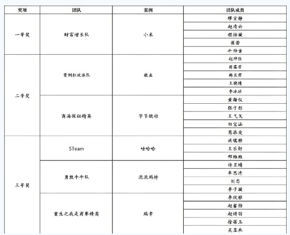 根据初赛10%、复赛30%、决赛60%计算各团队最终得分,最终获胜的团队如下: