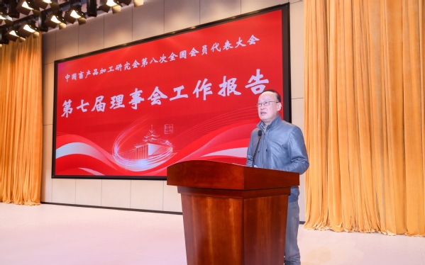 会长周光宏代表第七届理事会作工作报告,他指出研究会举办的肉品、乳业、蛋品三大全国性品牌会议影响广泛,牵头制定我国首批IS0国际肉品标准,开展科学技术奖评定和成果评价,推进研究会团体标准制定和宣贯活动,举办的全国大学生畜产品创新创业大赛和畜产食品健康安全教育取得显著成效。他指出由研究会编著的《畜产品加工学》在2021年荣获全国首届教材建设奖一等奖,是我国食品领域唯一的一等奖。周光宏强调畜产品加工业是关乎国计民生、关乎国人营养健康、关乎食品安全的重要农业食品产业,希望研究会各位同仁共同努力。