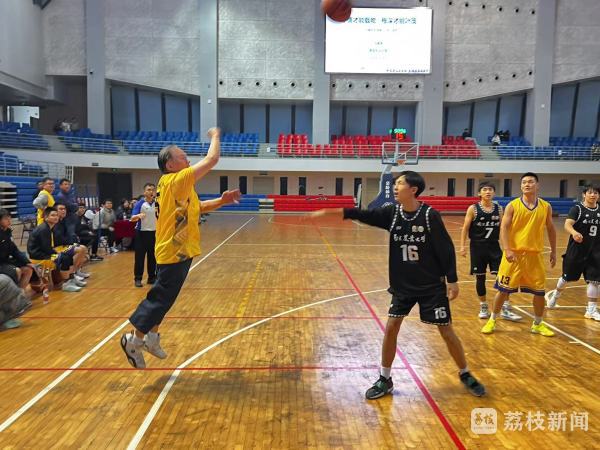 接球、起跳、投篮、命中,整场比赛,沈院士投中了9个3分球,矫健的身手,与队友的默契配合,赢得场外师生的阵阵喝彩。
