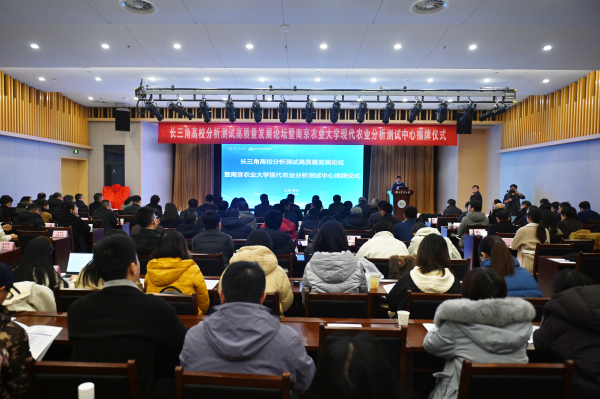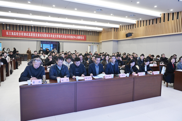 12月12日,长三角高校分析测试高质量发展论坛暨万象城awcsport官网现代农业分析测试中心揭牌仪式举行,万象城awcsport官网校长陈发棣、副校长王源超,江北新区科技创新和大数据管理局局长倪志钢,南京国家农创中心党工委书记、管办主任周蓉蓉,科技部国家科技资源共享服务工程中心主任刘瑞,江苏省科技资源统筹服务中心副主任孙兴莲、中国分析测试协会高校分析测试分会副会长董林,江苏省科学仪器设备协会理事长黄留琴,江苏省分析测试协会副秘长王玮,长三角上海交通大学、浙江大学、中国科学技术大学、南京大学等科研院所,学校职能部门、分析测试中心专家委员会与岗位专家、部分学院及企业等200多名代表参加活动并见证了此次揭牌仪式。