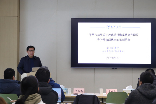 扬州大学冯立国教授作题为《干旱与盐胁迫下玫瑰通过海藻糖信号调控香叶醇合成代谢的机制研究》报告,报告揭示了非生物胁迫下RrbHLH105连接JA信号途径与海藻糖信号调控玫瑰花瓣香叶醇模式,为提高玫瑰抗逆性以及花朵品质调控机制的完善有着重要意义。