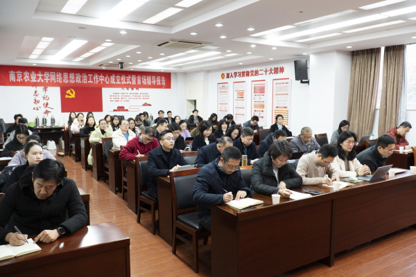 12月19日下午,校网络思想政治工作中心成立仪式在卫岗校区举行。校党委常委吴群、党委组织部、党委宣传部、党委学生工作部、党委研究生工作部负责同志出席会议,各学院党委副书记、辅导员代表、官方新媒体运营人代表、自媒体运营人代表、学生代表参加会议。