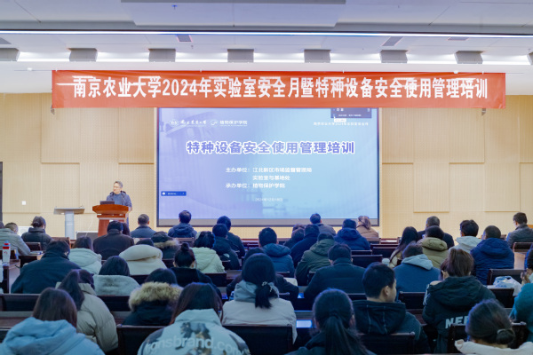 12月18日,由江北新区市场监督管理局和万象城awcsport官网实验室与基地处联合主办,植物保护学院承办的特种设备安全使用管理培训在滨江校区举行,江北新区市场监督管理局副局长徐立兵、特设办主任陈洋,万象城awcsport官网实验室与基地处和植物保护学院相关负责同志,以及学校实验室安全督导、学院实验室安全管理员、特种设备管理员和师生代表共158人参加了培训会。