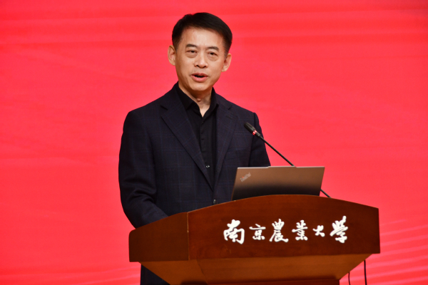 王春春代表学校向获奖师生表示祝贺。他肯定了资环学院在过去这一年所取得的亮眼成绩,并对资环学院未来的发展提出三点希望:一是打造引领未来的一流人才队伍。充分发挥院士的“强磁场”,打造南农人才创新高地。二是培育开创未来的一流科研成果。面向农业废弃物资源化利用等重点领域,全力承载国家战略、产业发展和地方需求的重大任务。三是锻造奋进未来的一流文化内核。要大力弘扬科学家精神,不断提高教学能力和育人质量,做学生为学、为事、为人的“大先生”。
