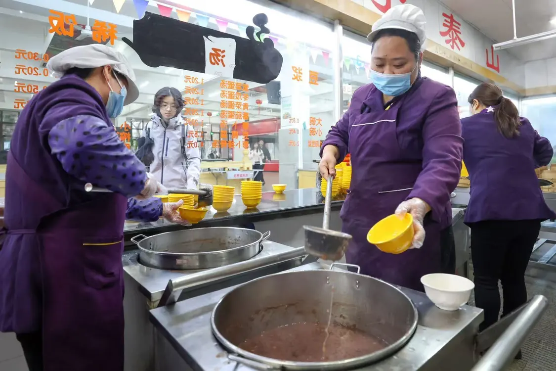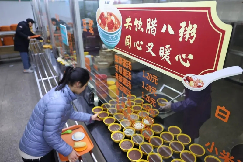 腊八节当天早晨6:30,后勤保障处带领食堂工作人员做了精心准备,滨江校区、卫岗校区、浦口校区三地食堂联动,共开设了4个窗口,为全校师生免费供应腊八粥。随着早餐高峰的到来,各摊位前排起了长队,师生们脸上洋溢着幸福的笑容。暖暖的祝福随着一碗碗热腾腾的腊八粥,在三个校区传递。