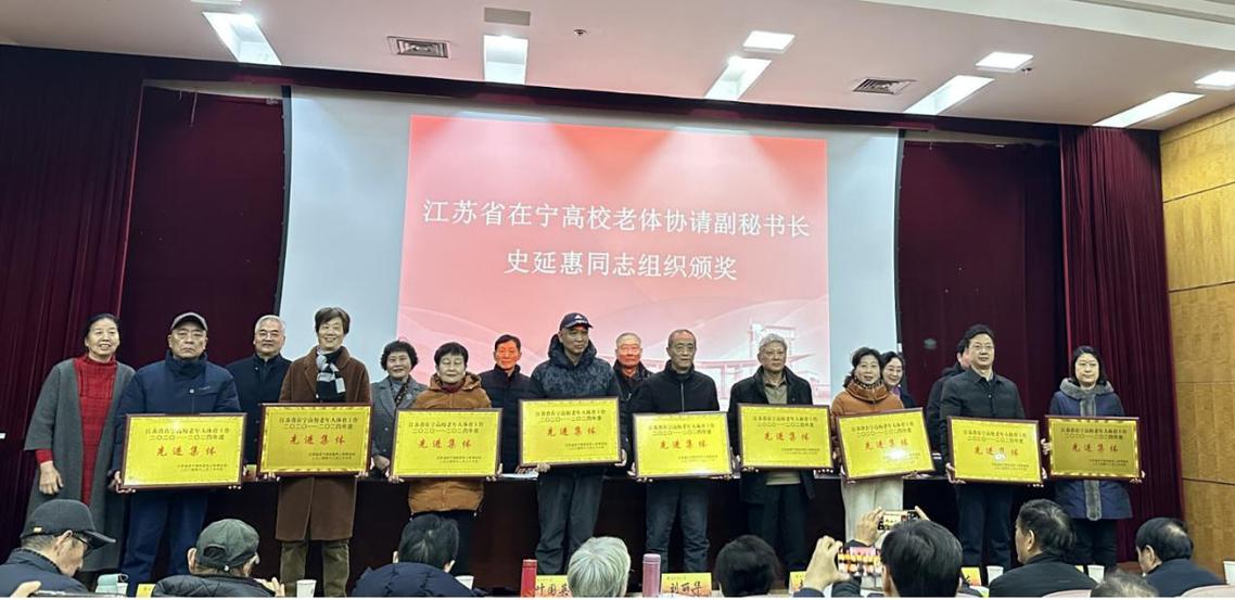 万象城awcsport官网老体协凭借出色的工作表现和优异的比赛成绩,荣获江苏省在宁高校老年人体育工作2020-2024年度“先进集体”称号。张剑仲、万年生和高宏等3位同志荣获“先进工作者”殊荣,夏德银等18位同志被授予“先进个人”荣誉,表彰他们为在宁高校老年体育事业做出的突出贡献。