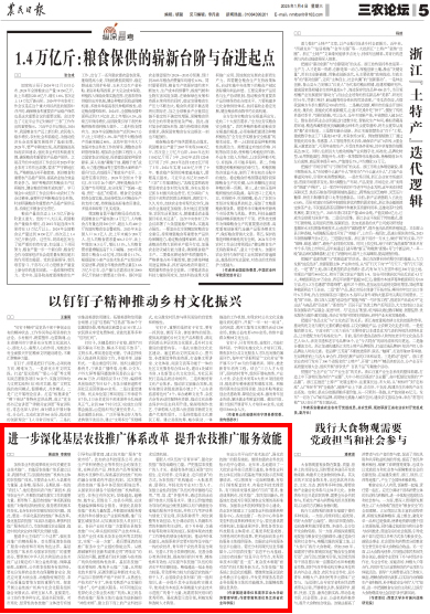 【农民日报】展进涛 李寅秋:进一步深化基层农技推广体系改革 提升农技推广服务效能