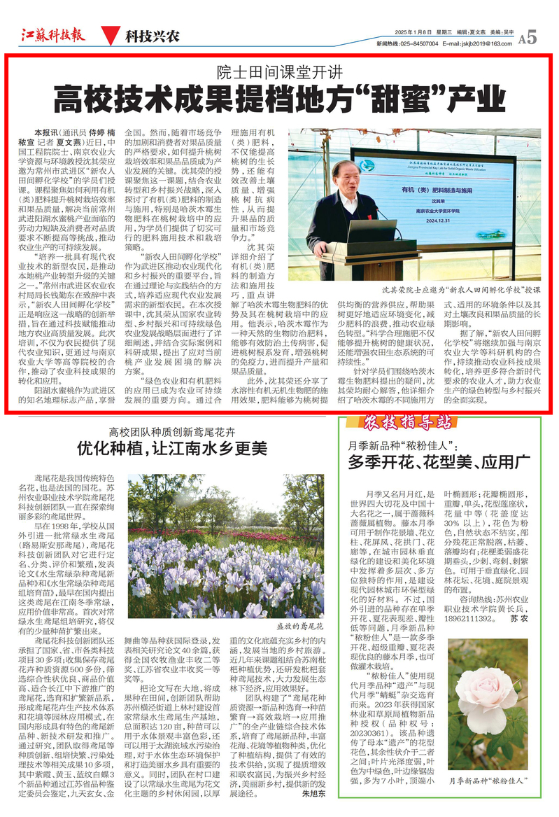 【江苏科技报】院士田间课堂开讲 高校技术成果提档地方“甜蜜”产业