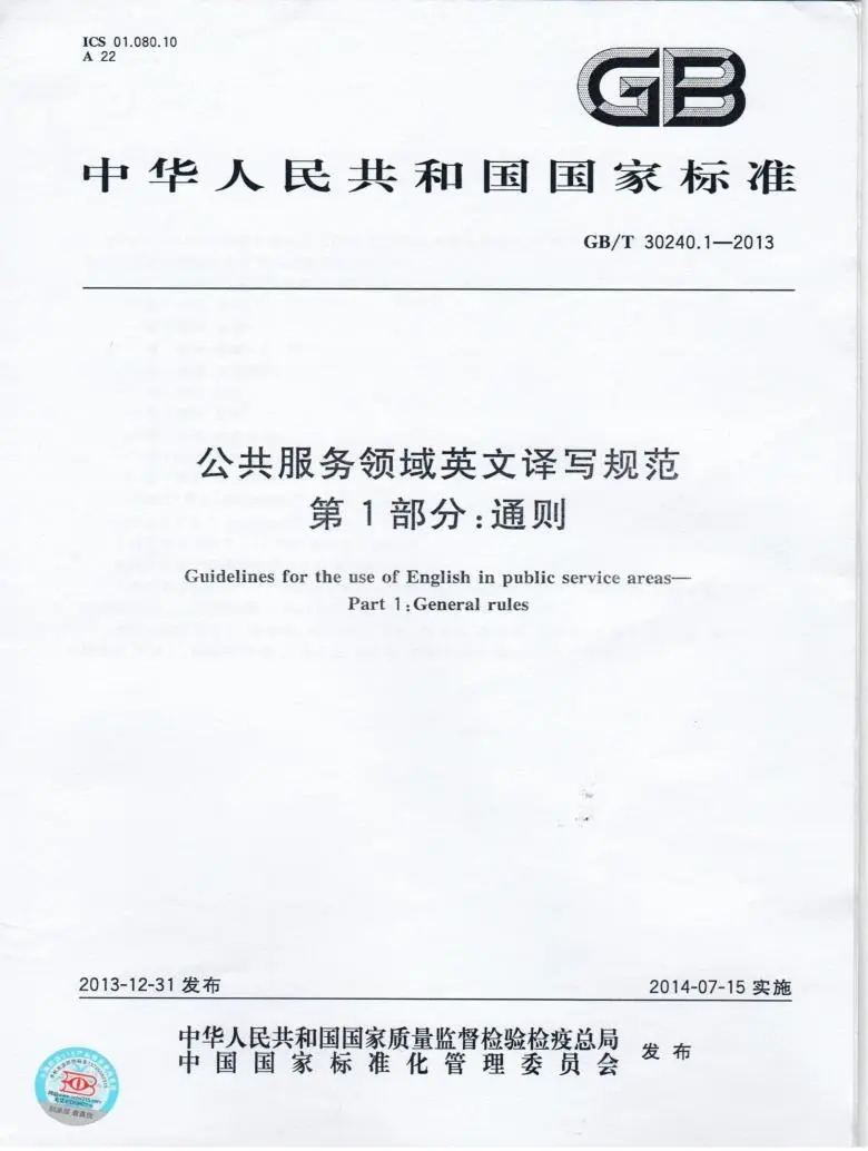 应邀参与起草《公共服务领域英文译写规范》国家标准