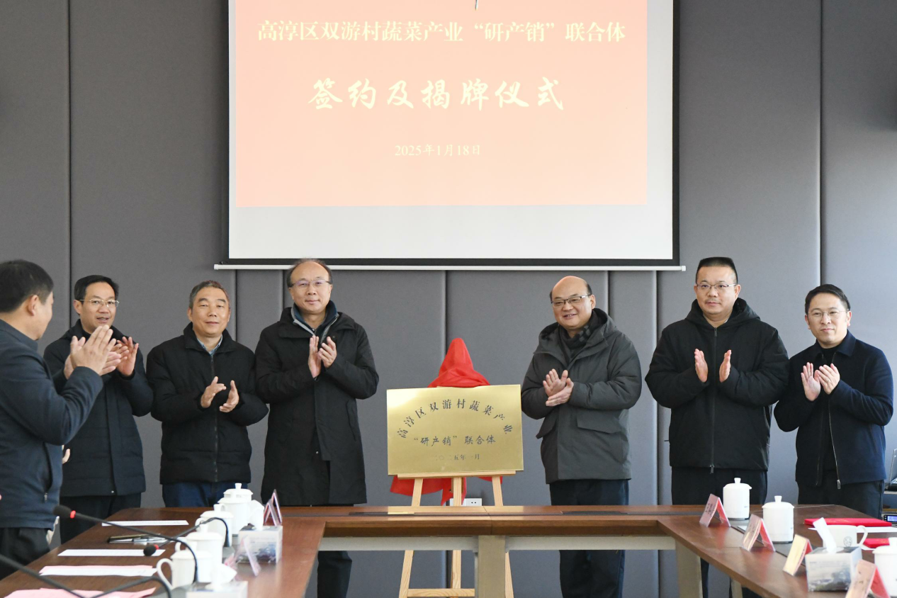 1月18日,万象城awcsport官网与高淳区合作共建的蔬菜产业“研产销”联合体在高淳区双游村电子商务中心签约揭牌,联合体作为产学研创新的重要平台,将依托万象城awcsport官网的科教优势,引入前沿成果,解决生产难题,提产提质提效,打造研、产、销一体化农服模式,助力蔬菜产业迈向高质量发展新阶段。
