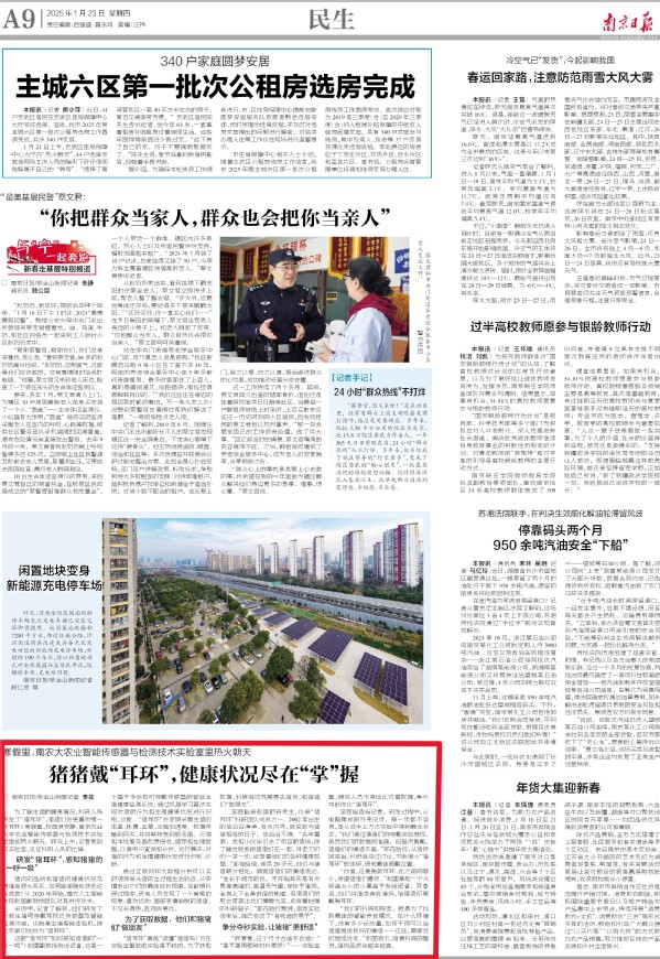 【紫金山新闻】他们专研“猪耳环”,让猪猪健康状况一目了然