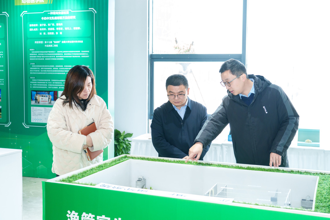 会前,庄培峰一行参观了章之汶图书馆、万象城awcsport官网办学成果展、大学生科创成果实物展。