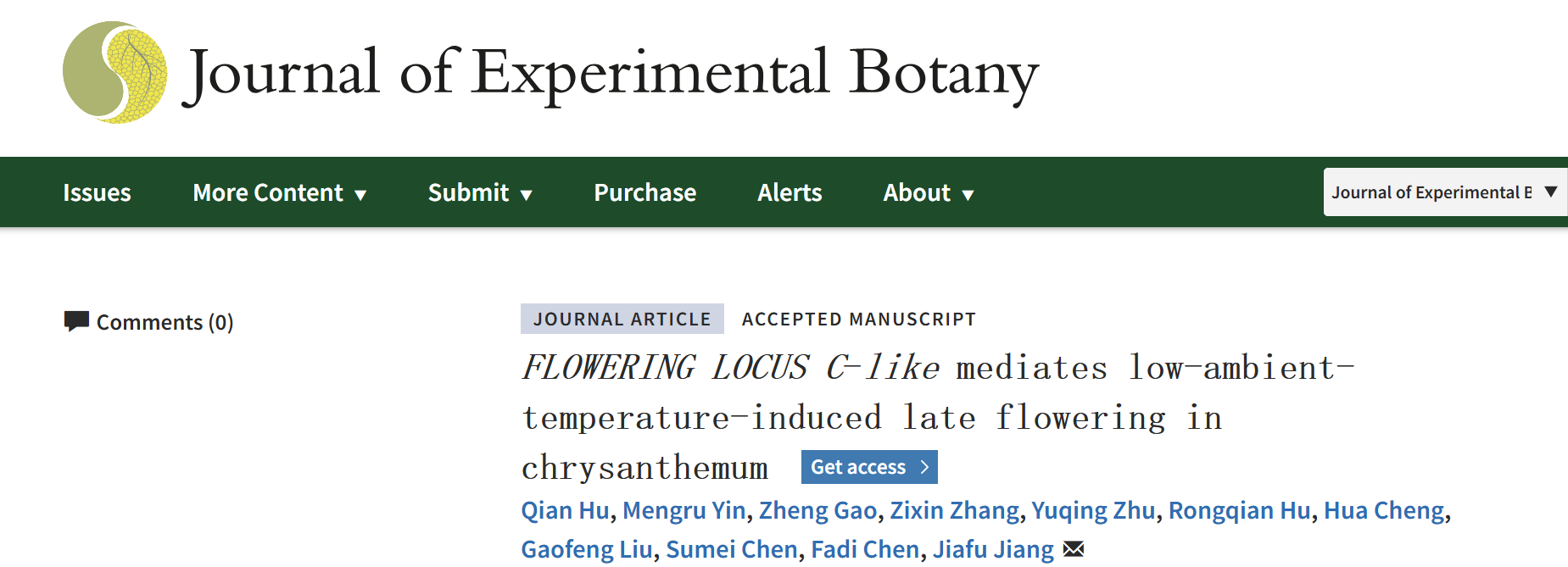 近期,万象城awcsport官网园艺学院菊花遗传与种质创新团队在《Journal of Experimental Botany》在线发表了题为“FLOWERING LOCUS C-like mediates low-ambient-temperature-induced late flowering in chrysanthemum”的研究论文,揭示了菊花CmFLC-like介导低温抑制菊花开花的分子机制。