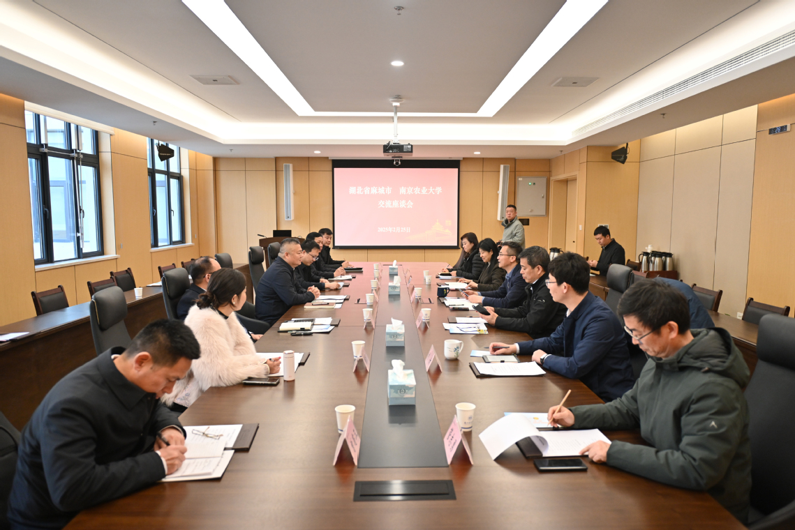 2月25日,湖北省麻城市委书记汪国兵率团来校开展校地合作专题调研。校长陈发棣、副校长王源超出席座谈会。