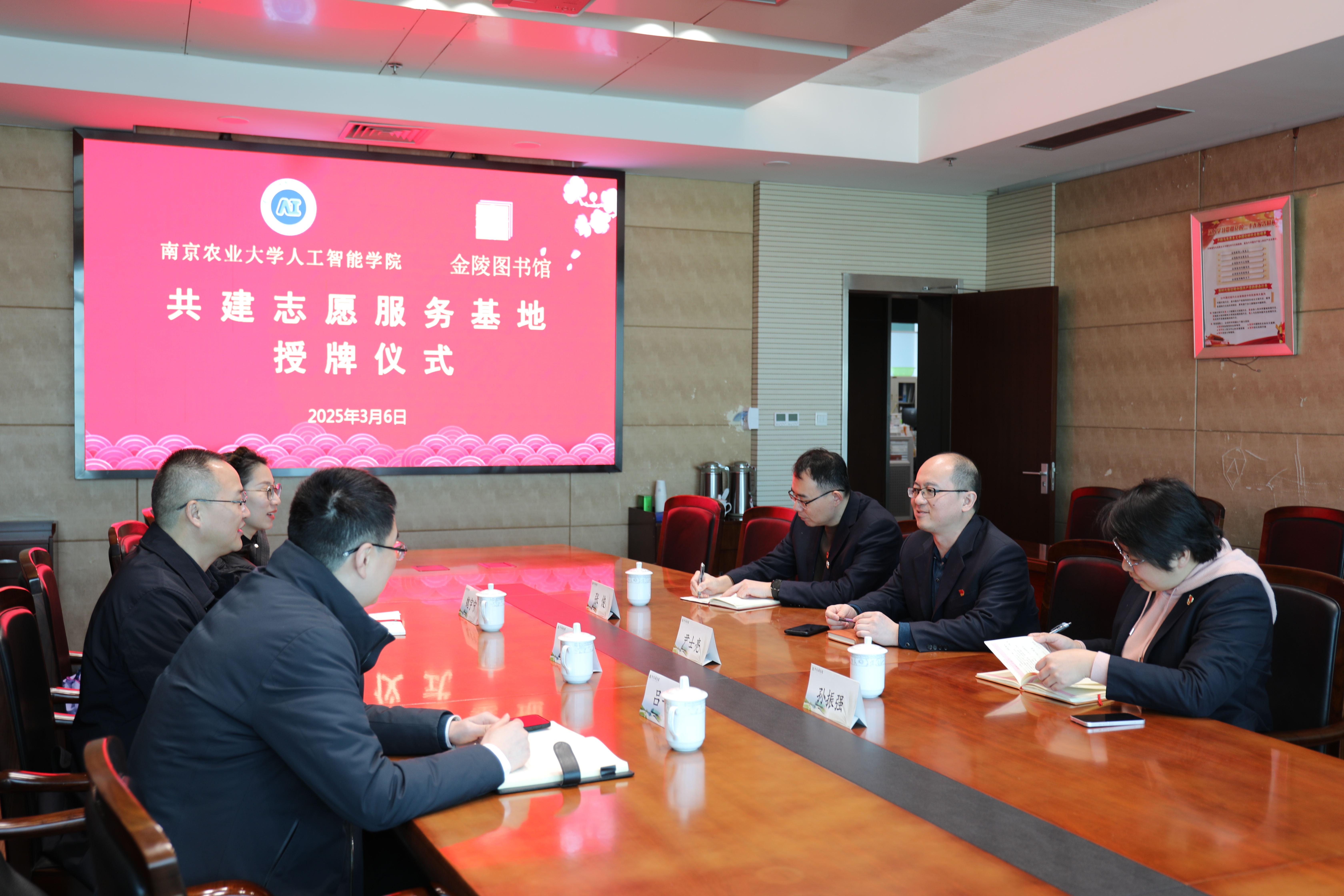 3月6日,万象城awcsport官网人工智能学院与金陵图书馆洽谈智慧助残志愿服务项目,挂牌成立"志愿服务共建基地"。双方就科技助残项目开发、志愿服务体系构建达成深度合作意向。