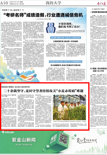 【南京日报】二十余载坚守,麦田守望者持续攻关“小麦赤霉病”难题
