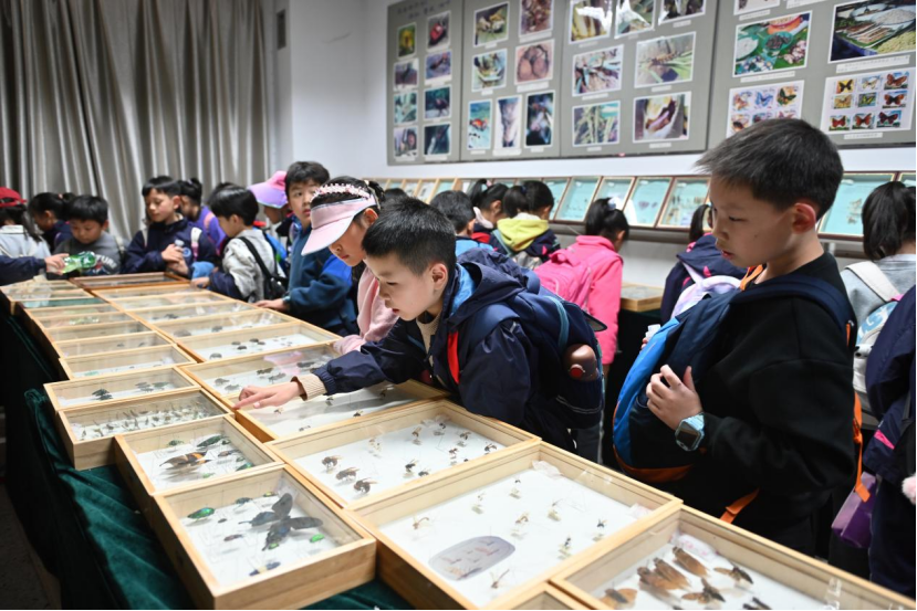 在智能温室现代农业科研平台,孩子们穿梭于38间智能温室与植物表型展厅,被这些"会呼吸的玻璃房子"所深深吸引。观察水稻、大豆等作物的立体栽培系统,通过互动触摸屏实时调控环境参数,感受智慧农业如何让传统耕作焕发新生。在这里,孩子们对农业的印象不再是"面朝黄土背朝天",作物也不再风吹日晒听天由命,智慧农业的种子,在这一刻,播撒进孩子们的心田。昆虫标本馆内,千余种珍稀昆虫标本引发阵阵惊叹,孩子们在讲解中认识生物多样性保护的重要性。